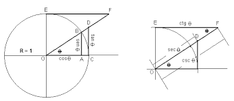 Para los casos de 0 y 90 grados es sencillo determinar los valores porque seno coseno y tangente en su determinado tiempo se rigen sobre los ejes de abscisa y ordenada respectivamente. Así tenemos que: